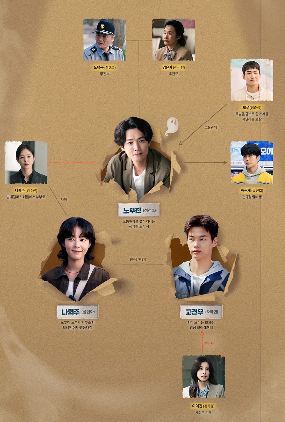 ◼ 철없고 허세 많지만, 한번 꽂히면 끝을 보는 열정적인 성격의 무진은 근로소득만으로는 파이어족이 되기 어렵다는 걸 깨닫고 과감히 퇴사해 투자에 뛰어듭니다. 그러나 코인과 선물 투자로 전 재산을 잃고, 결국 공인노무사 자격증을 따 새 출발을 시도하며,‘노무진 노무사 사무소’를 개업하지만 현실은 녹록지 않고, 생계 위기에 몰린 무진은 기자 출신 크리에이터 견우와 처제 희주의 제안을 받아들여 산업현장의 문제를 지적하며 수익을 올리는 콘텐츠를 제작하게 됩니다. 사업은 점차 자리를 잡아가지만, 한 공장에서 자재가 무진의 머리 위로 떨어지는 사고가 발생하면서 전환점이 찾아옵니다. 죽음의 문턱에서 만난 불길에 휩싸인 청년, 일명 '보살'은 무진에게 기이한 제안을 합니다. 목숨을 구해주는 대신 세상을 떠난 원혼들의 한을 풀어주라는 것. 그렇게 무진은 생명을 담보로 한 계약을 맺고, 이후 죽은 자들의 원혼이 보이는 특별한 능력을 얻게 되며, 현실과 영혼의 세계를 오가는 또 다른 여정을 시작하게 됩니다.